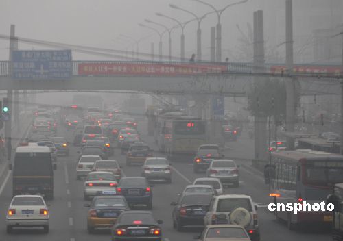 10月26日,北京阜外大街濃霧。當天清晨,北京市氣象局發布大霧橙色預警信號,部分地區出現能見度小于200米的濃霧。中新社發 趙振清 攝