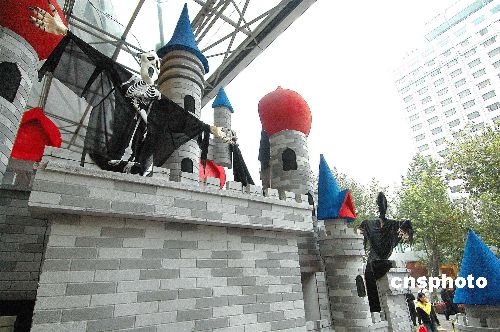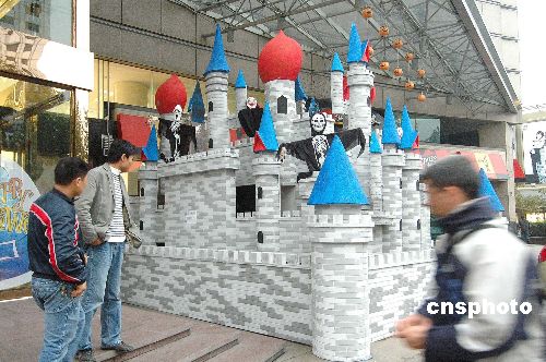 10月30日,兩座“鬼堡”出現(xiàn)在杭州一商店廣場(chǎng)。隨著“萬(wàn)圣節(jié)”到來(lái),杭州部分商家用各種形式的“鬼節(jié)”造型吸引顧客,抓住商機(jī)賺錢(qián)。中新社發(fā) 引煒 攝
