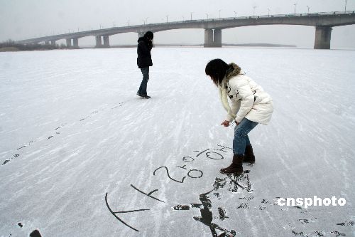 11月19日零時,黑龍江哈爾濱氣溫驟降,松花江段全面封江。當日13時,當地迎來第一場雪。中新社發 姚庭山 攝