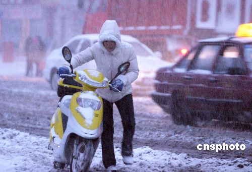 11月19日,隨著一股冷空氣的到來,丹東迎來中到大雪天氣。降雪伴隨著大幅降溫,迅速形成了大面積的積雪,給交通帶來不利影響。據了解,丹東是遼寧此次降雪量最大的地區。中新社發 陳浩浩 攝
