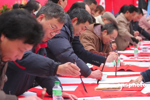 圖:重慶榮昌百名書法家冒寒上街義務(wù)寫春聯(lián)