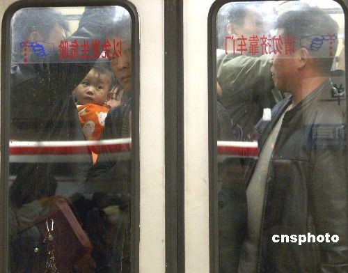 3月10日,北京地鐵里擁擠的人群。根據統計,北京地鐵在2月29日創下日客運量351萬人次的歷史紀錄。3月7日,北京地鐵全網客運量再創新高,達到359.7萬人次。其中地鐵5號線、13號線、八通線也同時創下各自歷史新高。中新社發 張朋 攝