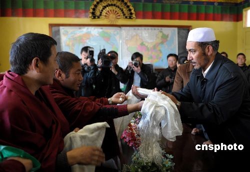 拉薩大昭寺僧人向大清真寺阿訇獻哈達