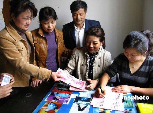2008年5月14日上午,江蘇省大豐市電影站10多名員工主動向向四川地震災區捐款3000多元,其中卞衛民、劉海燕夫妻倆捐款1000元。當天下午,該市召開動員大會,發動群眾向四川地震災區捐款獻愛心。昨天,該市紅十字會和慈善總會就收到市民捐款2萬多元,支援四川地震災區。中新社發 周古凱 攝
