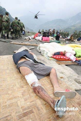 5月15日,武警官兵把等待救助的汶川災民送上直升機,轉往成都救治。中新社發 張雷 攝