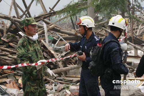 5月17日,救援隊(duì)隊(duì)員攜帶救援犬在紅白鎮(zhèn)一處廢墟搜救。當(dāng)日凌晨,55名新家坡國(guó)際救援隊(duì)隊(duì)員攜帶專業(yè)設(shè)備乘專機(jī)抵達(dá)成都雙流機(jī)場(chǎng)后,馬上轉(zhuǎn)汽車抵達(dá)什邡市紅白鎮(zhèn),與中國(guó)人民解放軍四川預(yù)備役官兵協(xié)同開始開展救援行動(dòng)。中新社發(fā) 鐘 敏 攝