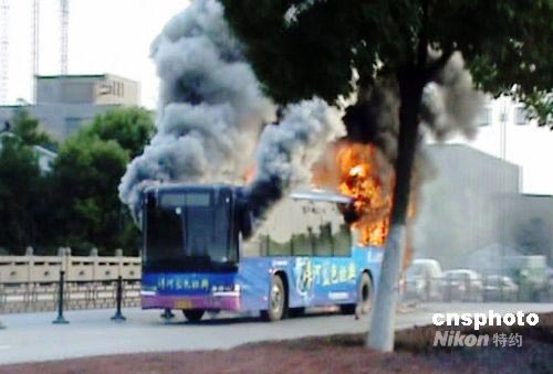 2008年7月6日下午16點58分,蘇州市一輛公交車在盤門路上行駛時突然發生自燃,蘇州消防特勤二中隊接警后迅速趕到現場將大火撲滅。據悉,該公交車自燃時車上乘客已全部安全下車,事故未造成人員傷亡。中新社發 朱子寒 攝