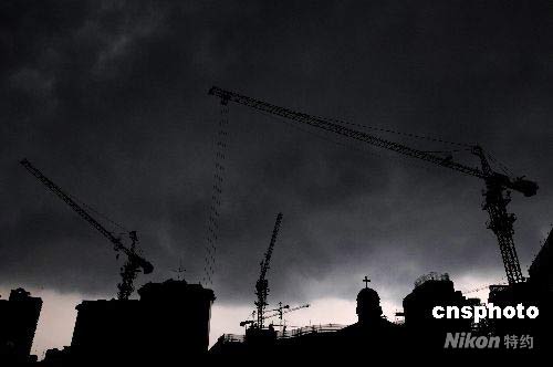 受2008年第七號臺風“海鷗”的影響,7月18日下午4點30分左右,層層黑云籠罩廈門城區上空,晝夜難分,約10分鐘后,雷陣雨傾盆而下。據當地氣象臺消息,廈門受到臺風外圍環流的影響,未來兩天可能出現中陣雨和雷陣雨,局部地區有大雨。中新社發 柳濤 攝