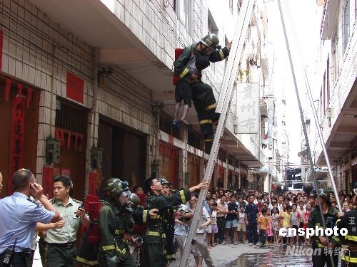 圖為消防官兵救出被困兒童。中新社發 張希友 攝