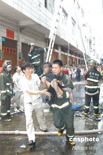 圖:廣西玉林消防員火場勇救兒童