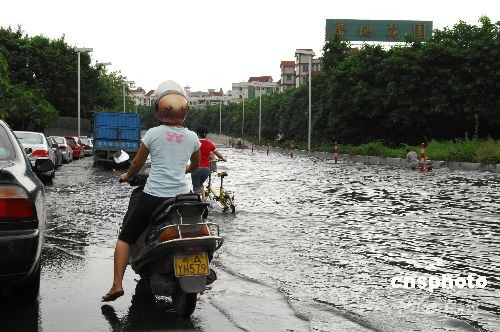 第14號強臺風“黑格比”9月24日清晨6點45分在廣東省電白縣陳村鎮海面登陸。省會廣州受臺風影響出現大風暴雨,行人出行受阻。中新社發 侯宇 攝