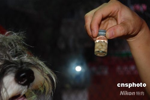 9月26日,廣西南寧一家寵物醫院的醫生展示一個小狗手術后取出的十余顆結石。小狗主人陳女士介紹說,該小狗未滿一歲,出生后由于體弱,主人就給它喂食三鹿奶粉,后來也曾食用過少量伊利奶粉,小狗三個月時出現排尿困難,之后去寵物醫院診治,至今已經導尿二十余次,做結石手術三次,共發現幾十顆結石,最近一次手術在十天前進行,發現十余顆結石,最大的結石如同花生粒一般。醫生說,這是他從醫十多年第一次見這么小的狗患結石,也是他所見到的最大的公狗結石,結石的原因與食用奶粉可能存在很大關系。 目前,小狗主人已經停止給小狗喂食奶粉。中新社發 劉萬強 攝