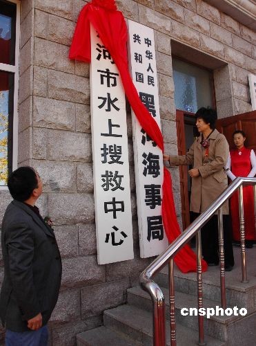 10月14日,中俄界河黑龍江黑河市水上搜救中心舉行揭牌儀式。黑河市水上搜救中心的職責是負責統一組織、協調和指揮全市水上突發事件的應急處置工作。黑河市水上搜救中心管轄中俄界河水域365公里和嫩江省界水域390公里,每年通過這段界河及內河船舶流量2萬多艘次,黑河口岸年船舶運輸旅客100多萬人次。目前水上搜救中心有海事及社會搜救船只近百艘,具有通航干線主要航段應急到達時間不超過1小時。主要港口一次溢油控制清除達到30噸的能力。目前,黑河海事局與俄羅斯布拉戈維申斯克海事部門就兩國界河水上搜救工作建立起合作機制。中新社發 邱齊龍 攝