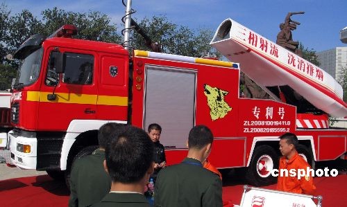 10月28日,由中國消防協會主辦的“第十二屆國際消防設備技術交流展覽會(CHINA FIRE 2008)”在北京全國農業展覽館開幕。國際消防協會聯盟、世界義勇消防聯盟,及美國、日本消防協會、德國消防促進會等國際知名消防組織給予此會大力支持。中新社發 鄒憲 攝