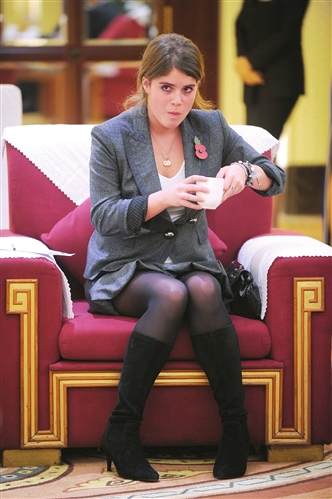 引人矚目的是,隨同安德魯王子 一同出訪的還有他的二女兒——尤金妮亞公主。由于這是第一次出國訪問,也是第一次以英國王室成員的身份亮相公眾,年輕的尤金妮亞公主很注意形象:特意穿了一身深灰色的職業套裝,黑色絲襪,黑色高跟鞋,隨身攜帶黑色手提包,舉止十分端莊,七分袖和喇叭裙擺的設計凸顯了公主的活潑美麗。在媒體鏡頭前,今年剛滿18歲的尤金妮亞公主顯得稍微有些局促,不時露出靦腆的笑臉。細品川茶時,輕輕抿一口,一不小心灑些茶水出來,她還飛快看一眼鏡頭,偷偷一笑,很是俏皮可愛。