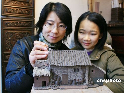 12月21日,市民正在欣賞紫砂雕塑《陶都特色民居》。為了再現(xiàn)昔日陶都特色建筑風貌,江蘇宜興工藝美術(shù)師周定芳先后用4個多月的時間,以當?shù)靥赜械淖仙澳嗨茉炝艘唤M造型各異的陶都特色民居,藝術(shù)地展示了宜興的地方風情,觀者無不稱奇。宜興是我國著名的陶都,陶瓷業(yè)十分發(fā)達,但生產(chǎn)過程中總會產(chǎn)生一些廢品,特別是過去窯爐較落后,廢品較多。在舊時,當?shù)厝罕姵S脧U棄或破碎的陶缸、陶甕、陶罐等作為建筑材料來建造墻壁等,造就出富有濃郁地方特色的陶都民居,成為宜興一絕。隨著時代的變遷,此種特色民居不斷被高樓大廈所替代,已越來越少。中新社發(fā) 丁煥新 攝