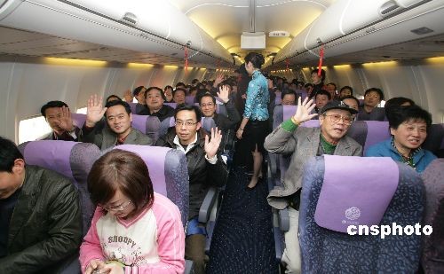 12月25日13時(shí)30分,一架滿載一百六十多名旅客的中國東方航空波音飛機(jī),從武漢天河機(jī)場啟程直飛寶島臺灣的臺北桃園機(jī)場。兩地同胞期待已久的直接、雙向、全面空中通航變?yōu)楝F(xiàn)實(shí)。中新社發(fā) 陳曉東 攝
