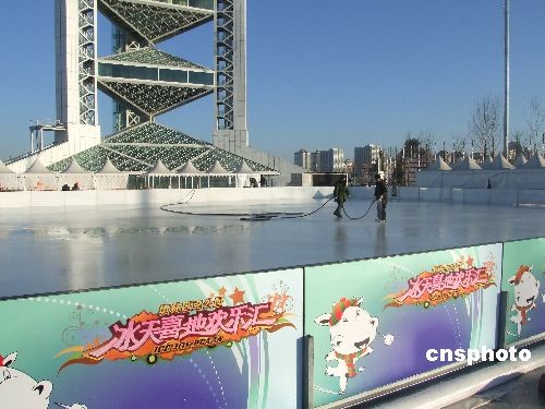 12月31日,北京國家體育場“鳥巢”旁玲瓏塔下,一塊近1000平方米的空地被厚厚的冰層覆蓋。據現場施工人員介紹,該場地正在建造溜冰場,預計冰面能達到5-6厘米厚,面積約1000平方米,為迎接元旦、春節“雙節”來臨而準備的臨時冰場,預計元旦即可正式對游客開放。