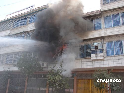 1月9日13時23分左右,廣西河池市南丹縣龍灘大道一居民房二樓突然爆炸并產生大火,南丹縣消防官兵迅速趕到現場撲救。40多分鐘后,大火被成功撲滅,消防官兵從民房內拖出五個液化氣瓶。事故無人員傷亡。中新社發 蘇金正 攝