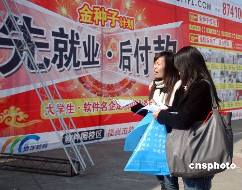 1月17日,福建省2009年春季大中專畢業生供需見面、雙向選擇大會在福州金山展覽城舉行。本次大會吸引了550多家用人單位前來招聘,為求職者提供近兩萬多個就業崗位,幾萬名大中專畢業生前來應聘。大會為公益性活動,對參會單位和求職人員均實行免費,參會的對象包括各設區市人事局,省直和中央在閩單位,各類企事業單位,各類人才中介機構,2009年大中專畢業生、畢業研究生及往屆待就業畢業生。中新社發 張 斌 攝