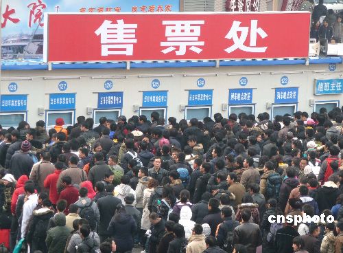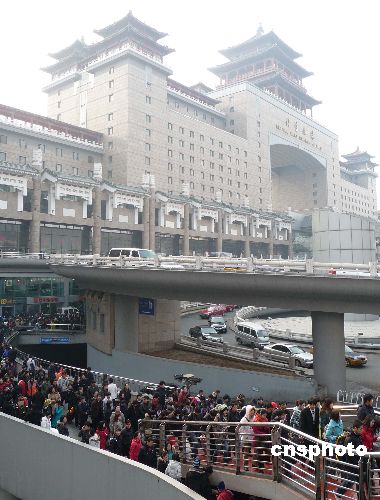 2009年1月17日,北京西站人頭攢動、旅客如織。當日,北京西站回家過年的“農民工返鄉流、學生流、探親流”依舊強勁,并呈持續增長的趨勢。中新社發 玉龍 攝