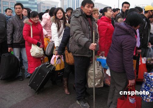 1月21日,北京車站廣場,成千上萬的返鄉過春節的旅客,按秩序排隊進站乘車回鄉過年農歷已丑年(牛年)的春節。當日是中國春運第11天,中國鐵道部預計,此后三天,鐵路將迎來節前客流的新最高峰。中新社發 鄒憲 攝