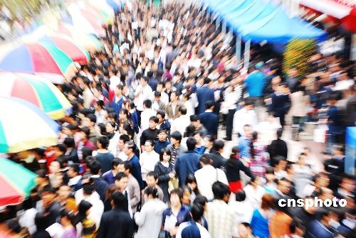 2月4日,2009年春節過后,海南省人才交流市場的首場人才交流會在?谌瞬沤涣髦行呐e行。共有140多家用人單位進場招聘,提供近3000個工作崗位。截止記者發稿時統計,已經有六千多名求職者到招聘會現場。中新社發 周運杰 攝