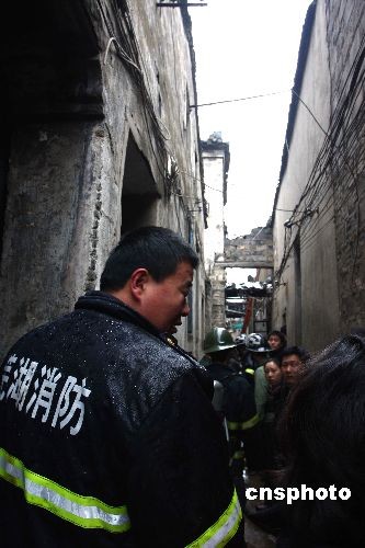 2月18日下午1時30分左右,安徽蕪湖市西內街一居民房發生火災。蕪湖消防部門接到報警后迅速趕往火災現場撲救,公安民警緊急疏散附近居民。目前尚未接到人員傷亡報告,火災原因在調查中。中新社發 水從澤 攝