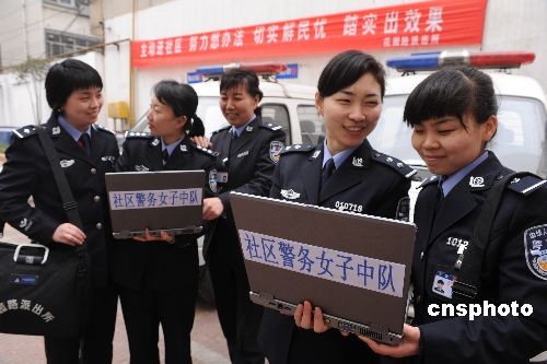 3月24日,鄭州市公安局金水分局花園路派出所結(jié)合轄區(qū)實(shí)際,以及青年女民警溫和細(xì)膩親和力強(qiáng)便于開展社區(qū)警務(wù)的特點(diǎn)和優(yōu)勢(shì),由鄭州市公安局金水分局花園路派出所11名社區(qū)女民警組成的河南公安首支“社區(qū)警務(wù)女子中隊(duì)”正式上崗。據(jù)了解,該“社區(qū)警務(wù)女子中隊(duì)”采用分片聯(lián)勤工作機(jī)制,既有各自的社區(qū)警務(wù)責(zé)任分工,又有相互合作聯(lián)勤協(xié)調(diào),優(yōu)勢(shì)互補(bǔ)。 中新社發(fā) 劉書亭 攝
