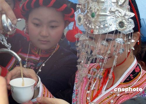 3月27日農(nóng)歷三月初三,是畬族的傳統(tǒng)節(jié)日“三月三”,又稱“烏飯節(jié)”。迄今已有近四百多年歷史的福建寧德市蕉城區(qū)金涵畬族鄉(xiāng)上金貝村舉辦了隆重的“三月三歌會(huì)”,吸引眾多當(dāng)?shù)禺屆窈瓦h(yuǎn)近游客前來(lái)踏青賞“歌”。 圖為畬族女子獨(dú)特的“鳳凰裝”和“鳳凰發(fā)式”,造型美觀,色彩斑斕,是歌會(huì)上一道特別亮麗的風(fēng)景。中新社發(fā) 徐釗 攝