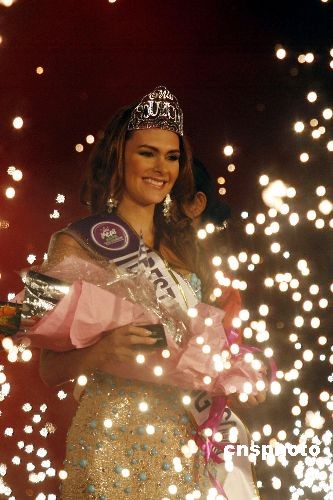 3月25日晚,委內瑞拉小姐Maria Lourdes獲得最佳晚裝小姐單項賽大獎。當晚,2008國際旅游小姐冠軍總決賽最佳晚裝小姐單項賽在河南鄭州舉行,來自115個國家和地區的佳麗參加了角逐。中新社發 慎重 攝