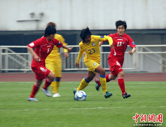 中新網(wǎng)成都5月20日電(記者劉忠俊 楊杰 劉賢)5月20日下午,2010年女足亞洲杯A組比賽在成都體育中心拉開戰(zhàn)幕,亞洲勁旅朝鮮女足迎戰(zhàn)泰國(guó)女足。開場(chǎng)3分多鐘朝鮮隊(duì)17號(hào)前鋒全明花率先攻進(jìn)第一球,隨后10號(hào)前鋒金英愛再進(jìn)一球,上半場(chǎng)朝鮮隊(duì)以2:0暫時(shí)領(lǐng)先。今晚日本女足將與緬甸女足展開對(duì)決。