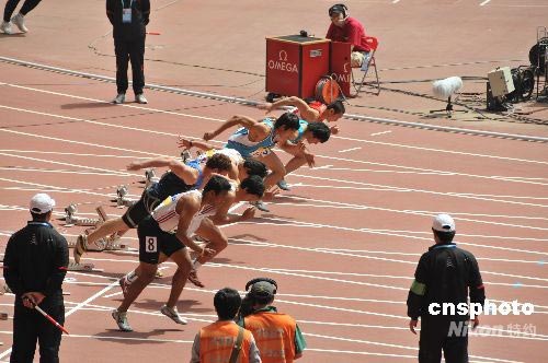 “好運(yùn)北京”2008年全國田徑錦標(biāo)賽暨中國田徑公開賽,自5月22日至25日在國家體育場“鳥巢”舉行,22日上午九點(diǎn)比賽開始前,全體觀眾、運(yùn)動(dòng)員、工作人員起立,向四川地震遇難同胞默哀;今天上午進(jìn)行的項(xiàng)目有:女子七項(xiàng)全能100米欄、男子F/55/56/57/58標(biāo)槍決賽、女子100米欄預(yù)賽 、男子跳遠(yuǎn)及格賽A/B、 男子1500米預(yù)賽 、女子七項(xiàng)全能跳高A/B 、男子鉛球及格賽 A/B、 女子1500米預(yù)賽、 男子400米預(yù)賽、女子400米預(yù)賽等。中新社發(fā) 馮軍(北京) 攝