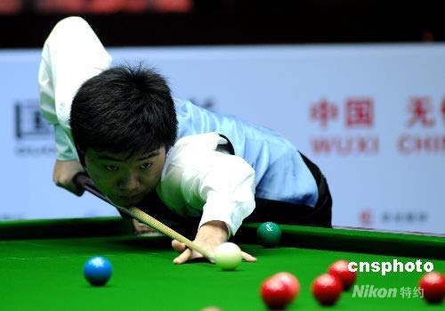 2008年6月8日下午,2008世界斯諾克江蘇精英賽決賽在無錫體育中心體育館結束。丁俊暉以6比5戰勝英格蘭選手塞爾比奪得冠軍。中新社發 劉建民 攝