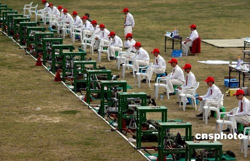 十月二十七日,第六屆全國農運會“民兵軍事三項比賽”射擊比賽在福建泉州公安訓練基地舉行。來自全國各地的參賽選手們共進行步槍臥、立、跪姿無依托各十發子彈的比賽。中新社發 傅丹丹 攝