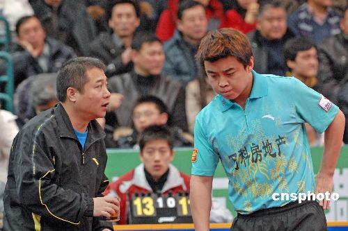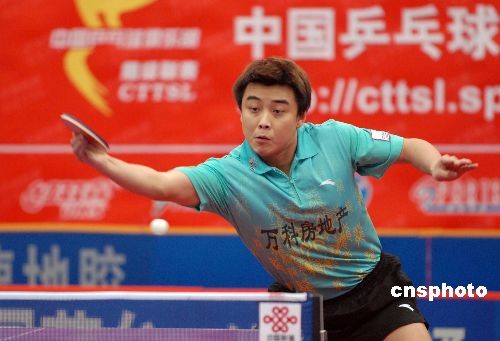 12月6日晚,2008年乒超聯賽第二階段比賽繼續進行,在男團一場保級大戰,王皓雖拼勁全力,連勝錦州銀行兩員大將雷振華、徐輝,為球隊貢獻兩分,但困于球隊實力單薄,八一隊還是以2-3負于常規賽倒數第二錦州銀行。中新社發 谷進 攝