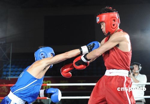 十二月十九日晚,首屆中國—東盟(十加三)拳王爭霸賽在中國廣西南寧市開打。來自越南、緬甸、柬埔寨、泰國、菲律賓、印度尼西亞等東盟六國和中國、韓國共九支隊伍四十名拳壇高手將分別參加八個級別的比賽。當天晚上所進行的四場比賽,中國隊獲得了三場比賽的勝利。中新社發 蔣雪林 攝