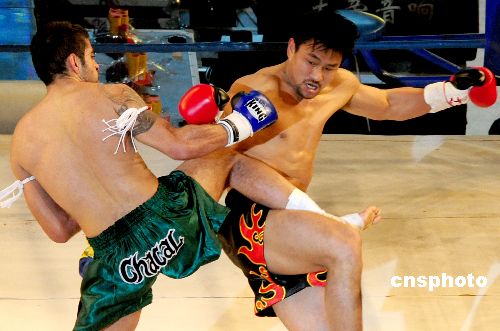 1月17日晚,在“武林風”第三屆環球拳王爭霸賽在河南洛陽舉行。環球拳王爭霸賽是河南電視臺和日本富士電視臺合作主辦的一項大型中外武術交流活動。中新社發 高山岳 攝
