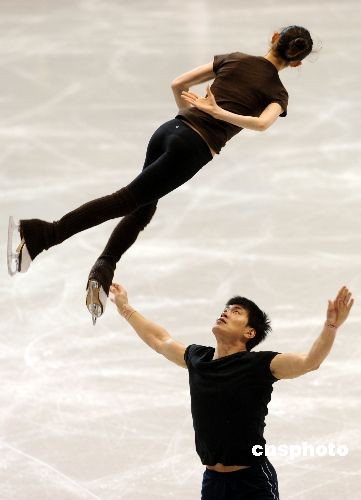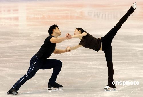 當地時間三月二十三日下午,中國雙人滑選手張丹/張昊在洛杉磯進行賽前訓練。二00九年世界花樣滑冰錦標賽二十四日將在洛杉磯開幕。中國名將、都靈冬奧會亞軍張丹/張昊和世錦賽冠軍龐清/佟健將向雙人滑金牌發起沖擊。中新社發 張煒 攝
