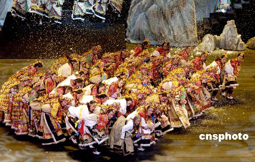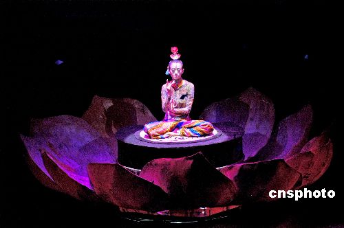 10月23日,楊麗萍扮演藏族女神荷花度母。當日,由著名舞蹈家楊麗萍和藏族歌手容中爾甲主演的大型藏族原生態(tài)歌舞樂《藏謎》在上海大劇院上演。中新社發(fā) 董鴻景 攝