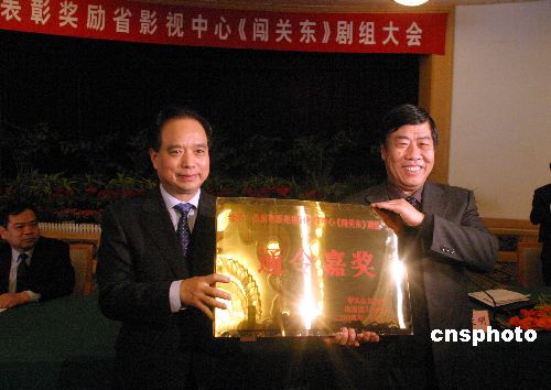 1月31日,山東省委、省政府在濟南召開表彰大會,對《闖關東》劇組通令嘉獎,并向山東電影電視劇制作中心頒發獎金200萬元。據悉,《闖關東》在央視一套播出后,收視率創央視開年大戲的新高。中新社發 龔輝 攝