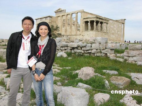 當(dāng)?shù)貢r(shí)間3月22日下午,搜狐公司董事局主席兼首席執(zhí)行官?gòu)埑?yáng)、搜狐奧運(yùn)官網(wǎng)特約記者章子怡與奧運(yùn)官方網(wǎng)站圣火報(bào)道團(tuán)一行前往帕納辛納克斯泛雅典體育場(chǎng)、衛(wèi)城等雅典遺址,沿著奧運(yùn)圣火傳遞的足跡,率先為中國(guó)億萬(wàn)網(wǎng)民傳遞當(dāng)?shù)貍鋺?zhàn)奧運(yùn)圣火傳遞的盛況。圖為張朝陽(yáng)(左)與章子怡在雅典衛(wèi)城采風(fēng)。中新社發(fā) 沈晨 攝