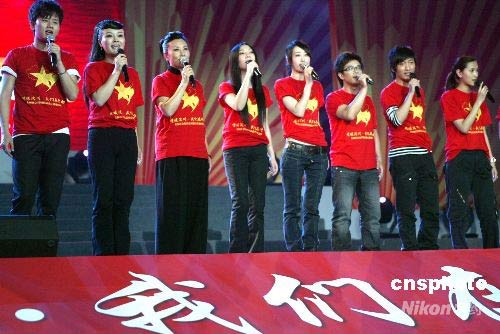 5月25日晚,由13家國家一級(jí)社會(huì)組織共同主辦的“情暖汶川·我們?cè)谛袆?dòng)——全國社會(huì)組織抗震救災(zāi)募捐義演”在北京首都體育館舉行,來自社會(huì)各界的1萬余名觀眾參加了此次募捐活動(dòng)。現(xiàn)場(chǎng)籌得款物將通過中華慈善總會(huì)全部捐給地震災(zāi)區(qū)。中新社發(fā) 趙雋 攝