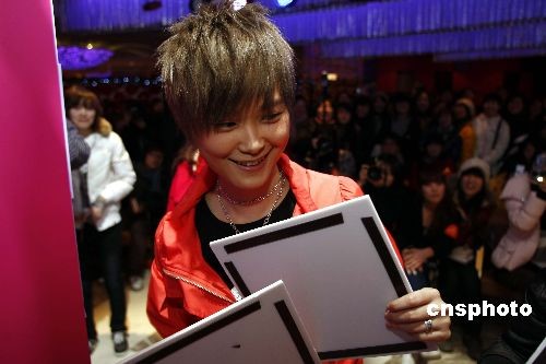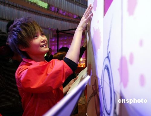 12月下旬,人氣藝人李宇春在北京出席新銳配飾品牌ctf2舉辦的“2008我的彩色夢想”頒獎儀式,并與眾多時尚彩繪愛好者進行互動游戲。該活動上展示了ctf2在2008年從全國10所高校與社會征集來的近千幅CoCo Cat新形象作品,揭曉2009年ctf2 CoCo女郎最新形象。李宇春現(xiàn)場為獲獎?wù)哳C獎。中新社發(fā) 楊可佳 攝