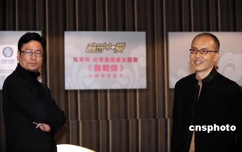 十二月二十七日,陳其鋼、曾慶淮、陳丹青等揮錘砸爛冰制鳥巢,取出《我和你》珍藏版專輯正式發布。陳其鋼是北京奧運會開幕式音樂總設計,北京奧運會開幕式主題曲《我和你》的作者。中新社發 廖攀 攝