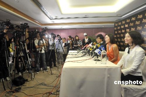 二月二十四日,第三屆亞洲電影大獎記者會在香港舉行。評審主席楊紫瓊、電視廣播有限公司電視廣播業務總經理陳志云、亞洲電影大獎及香港亞洲電影投資會執行總監何韻明等出席。中新社發 鄧慶樂 攝