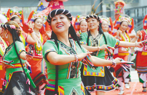 昨天,在南京人氣最旺的新街口,回蕩著《阿里山的姑娘》、《外婆的澎湖灣》等耳熟能詳的臺灣樂曲。