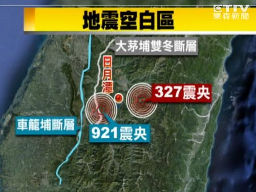 327地震、602地震兩次地震震中都位于921地震車籠埔斷層?xùn)|邊,這塊區(qū)域過去很少有地震紀(jì)錄,被稱為“日月潭地震空白區(qū)”,從過去的地震分布圖分析,日月潭東邊這區(qū)塊是幾乎是空白一片。臺(tái)灣“中央大學(xué)”地球科學(xué)院長王干盈在327地震后曾表示,“中央山脈很硬,卡住,所以921地震,你可以看到這個(gè)地方卡住,所以它才沖到這邊來。”