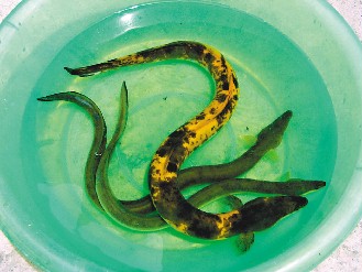 中新網6月12日電 臺灣嘉義縣漁民飼養一只色澤很像香蕉皮的野生鰻魚,取名“黃金鰻”,但看過的親友則另取名“香蕉鰻”。當地許多養鰻業者及漁民說,從未見過這種“香蕉鰻”,非常罕見。
