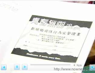“我拒絕婚前性行為!”一起宣示拒絕婚前性行為,還簽下這張宣誓卡,這是校方送給應(yīng)屆畢業(yè)生的畢業(yè)禮物,大家煞有其事的發(fā)表自己簽署這張卡片的理由。